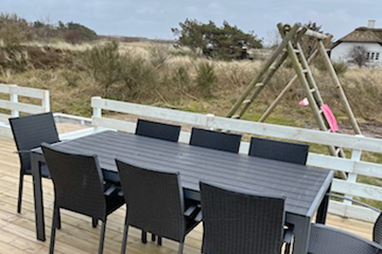 Dette 200 m² store feriehus, som er opført i 1987 og 1991, ligger 2,3 km fra Vesterhavet. Huset er beliggende på en 3.000 m² stor naturgrund, hvor børnene kan boltre sig i sandkassen og på gyngen. På den store terrasse med havemøbler og grill er der rig mulighed for at nyde solen. Hvis man ønsker at komme ud i naturen, ligger huset tæt ved Nationalpark Thy, Limfjorden og Vesterhavet, som alle steder er et besøg værd. Efter en naturoplevelse lokker en svømmetur i poolen og måske et ophold i saunaen og spabadet eller man kan bare nyde udsigten. Der er 2 badeværelser med toilet, håndvask, bruseniche og gulvvarme. Huset opvarmes af el-radiatorer, en økonomisk varmepumpe opvarmer poolen I poolhuset er der 14 sovepladser: 4 værelser med dobbeltseng, 1 værelse med 2 enkeltsenge og 1 værelse med 4 køjepladser. 2 husdyr er tilladt Der er ikke TV2 kanal eller betalingskanaler i huset. RYGNING ER IKKE TILLADT.